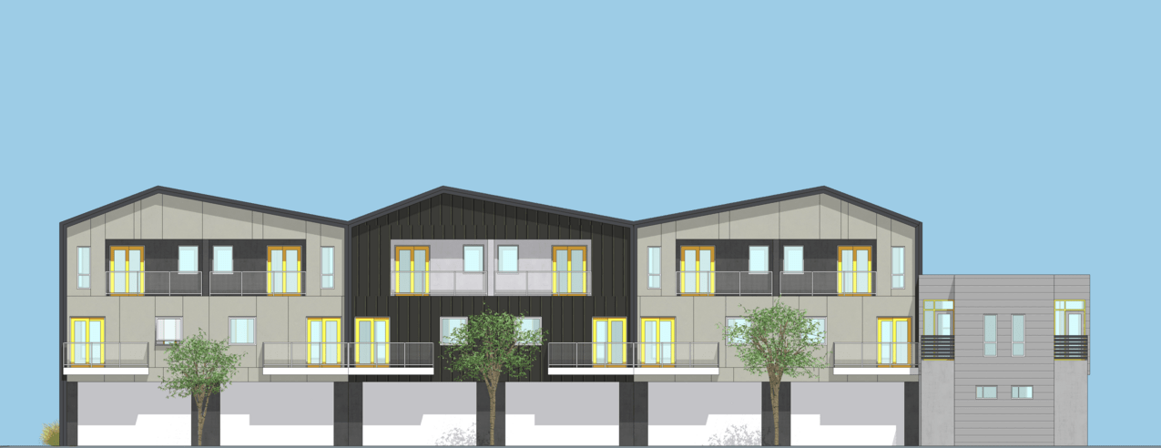7 new townhomes for a transitioning neighborhood in Pasadena. We worked closely with our client to curate an architecture reminiscent of Craftsman overhanging eaves fit into a modern townhome typology.