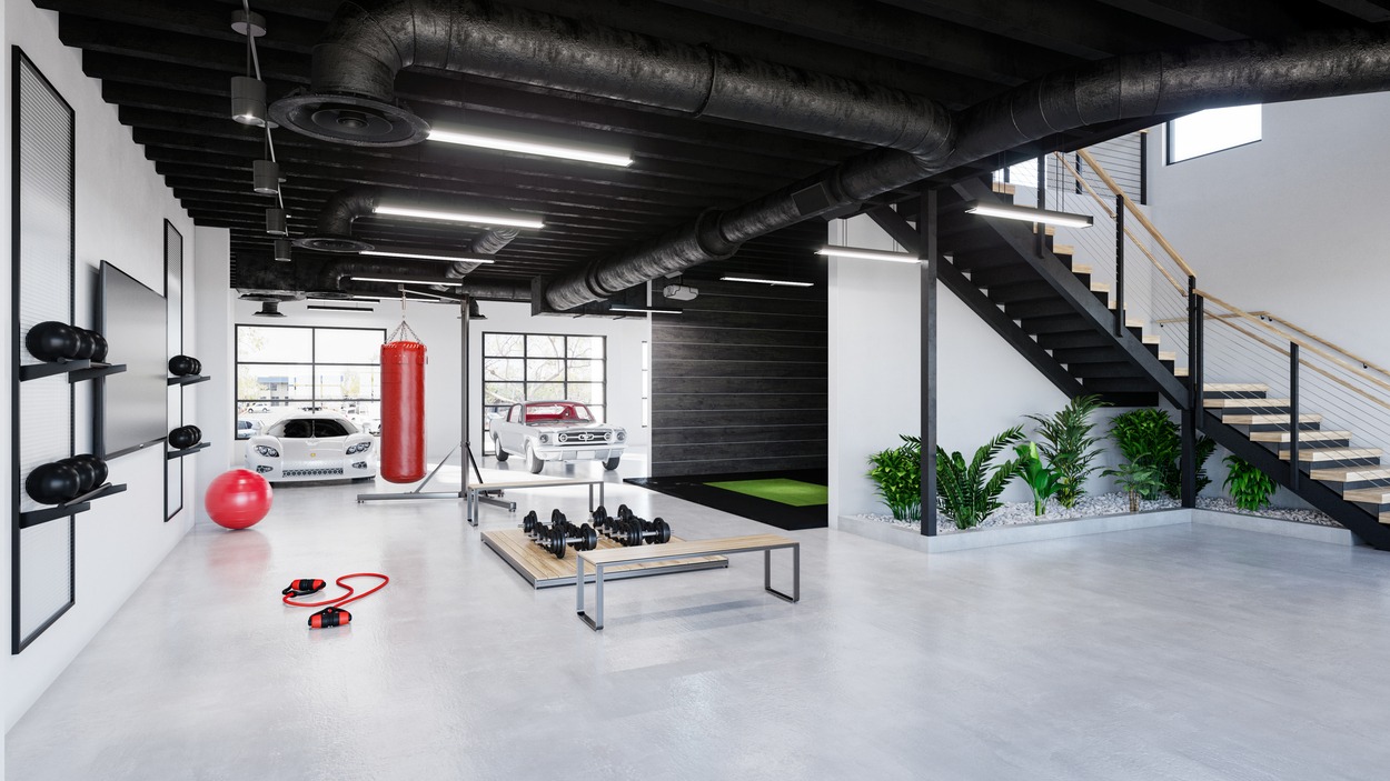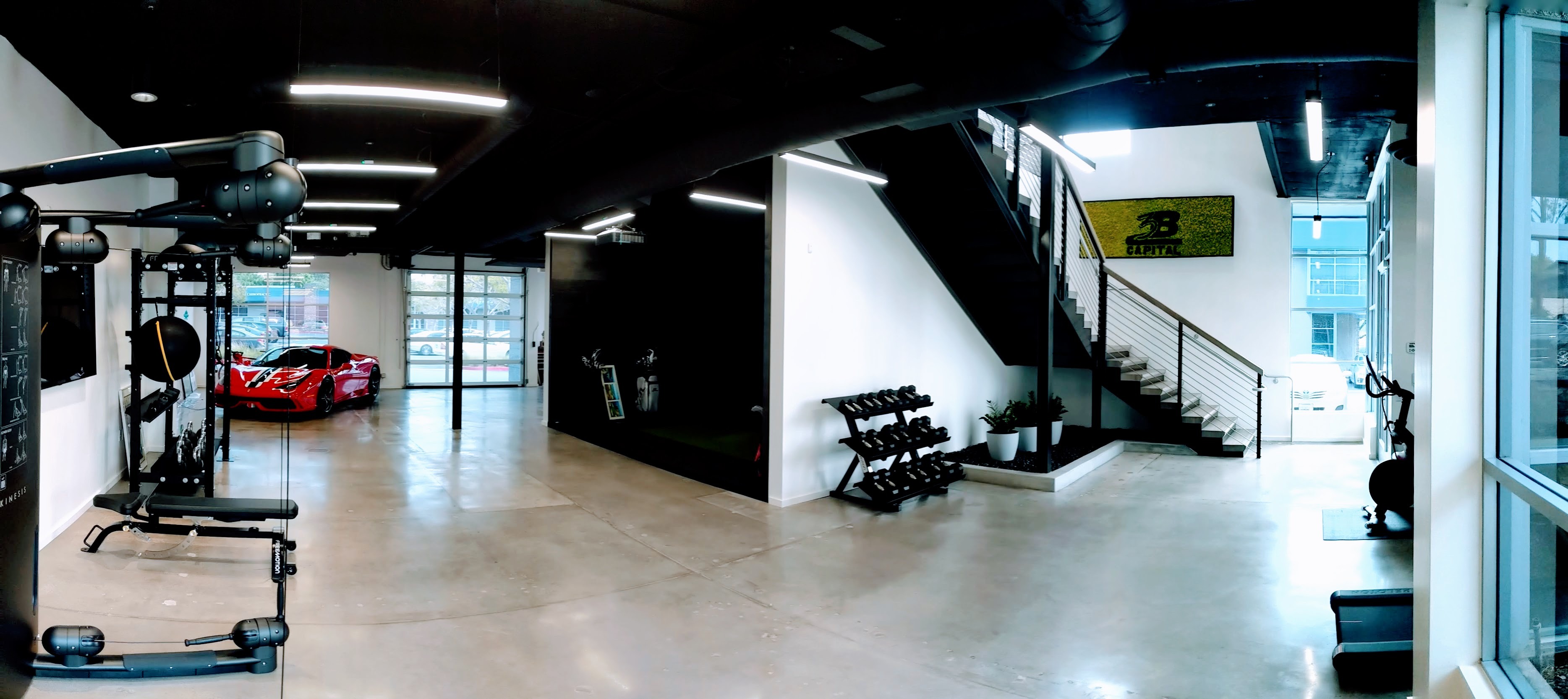 Irvine Ave is a full-service, custom tenant-improvement for a private client in Newport Beach. The existing office space has been insightfully transformed into a mixed-use, creative office with antique automobile garage, private fitness area, golf simulator and collaborative office space.